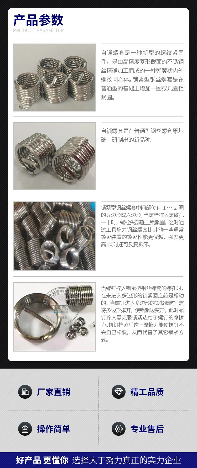 簡易螺紋護套安裝工具有螺紋頭、光桿兩種。用于少量安裝,一般維修、實驗時用,操作時不易安裝,鋼絲螺套容易報廢。