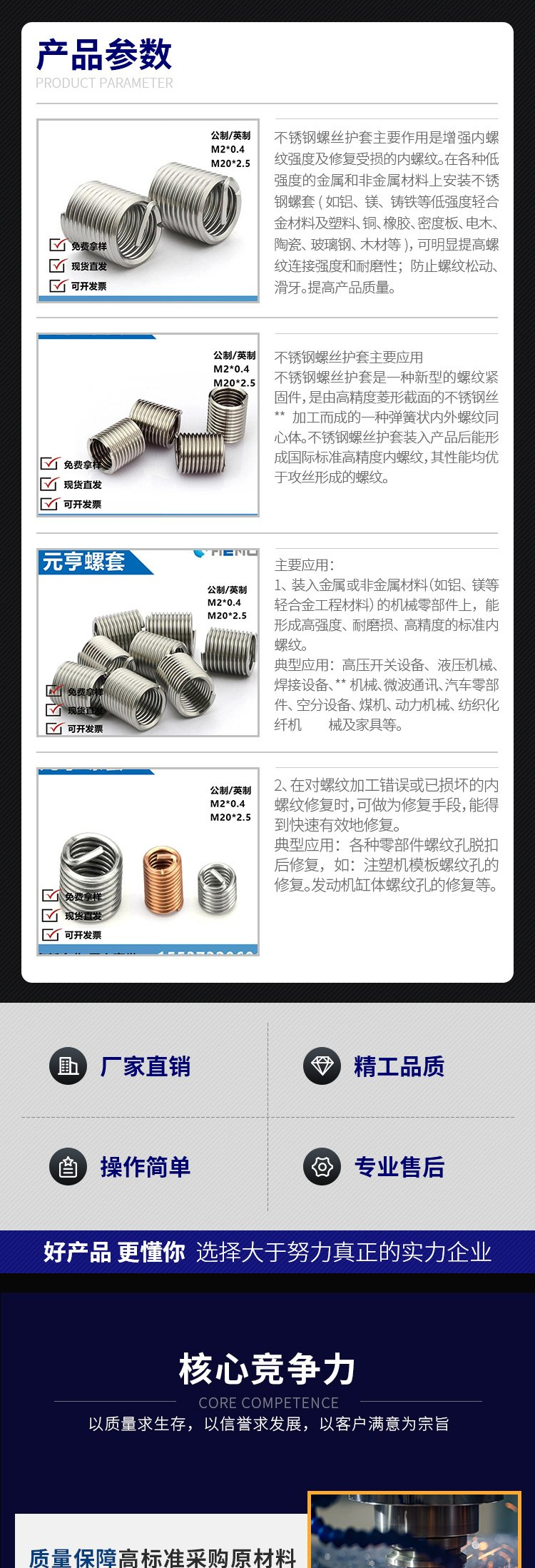 • 螺紋護(hù)套 316 鋼絲螺套 彈簧套 元亨
