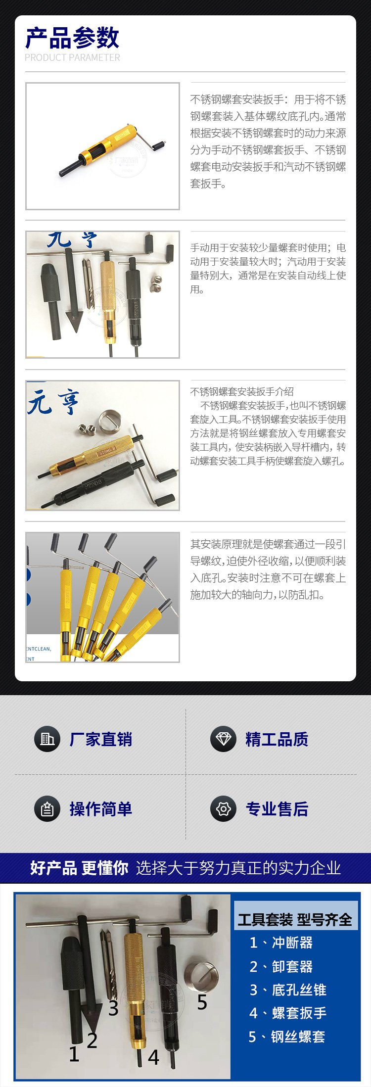 M3M4M5不銹鋼螺套安裝扳手 牙套扳手、 元亨扳手