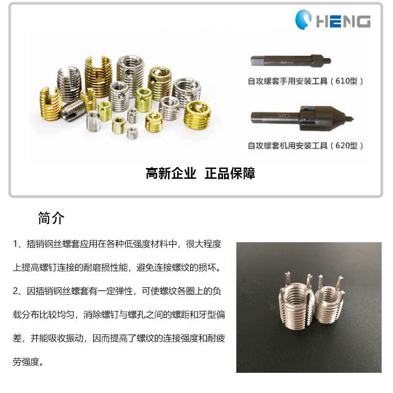 簡易螺紋護套安裝工具有螺紋頭、光桿兩種。用于少量安裝,一般維修、實驗時用,操作時不易安裝,鋼絲螺套容易報廢。