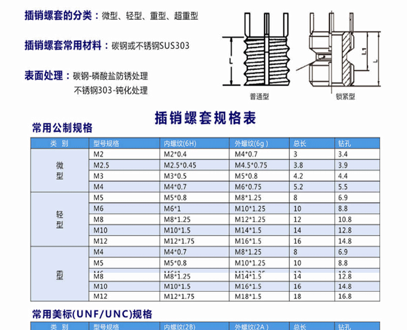 表1 公制(M、MJ)系列粗牙鋼絲螺套參數(shù)表 單位:(mm)