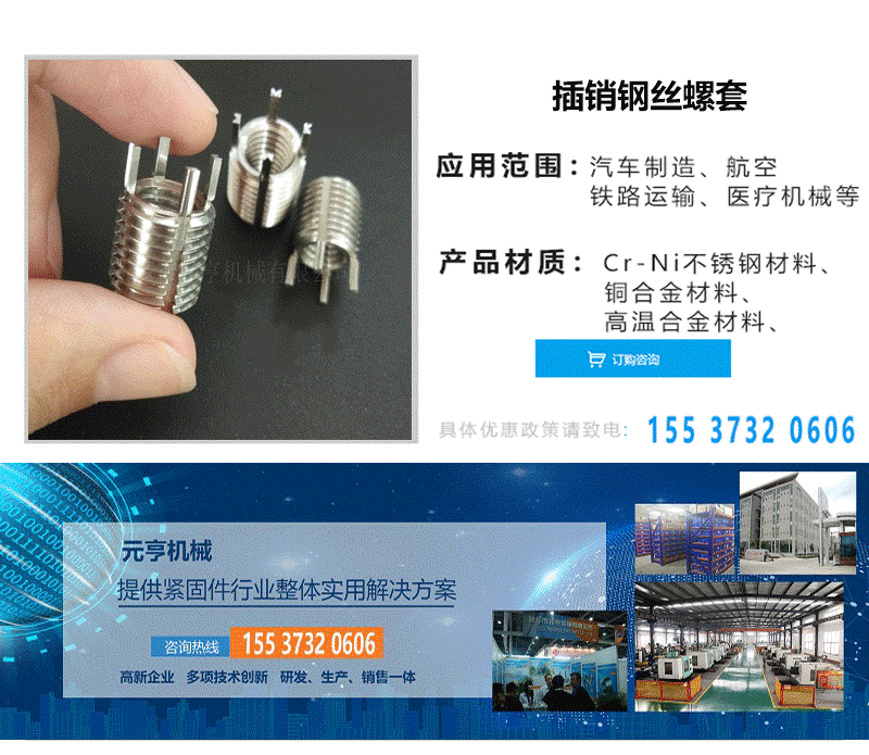 使用標有規(guī)定螺紋規(guī)格的鋼絲螺套專用絲錐攻絲,攻絲的長度必須超過鋼絲螺套長度,對于通孔,要全部攻絲;攻絲的精度決定終標準內(nèi)螺孔的公差帶,使用者要適當?shù)剡x擇攻絲方法和潤滑,盲孔攻絲要適當用力, 以防折斷絲錐。攻絲后,螺紋孔應(yīng)清理,一般用壓縮空氣噴槍吹,盲孔時還應(yīng)使用帶徑向孔的長噴槍自下而上清理, 也可以用清洗的方法清理螺紋孔。螺紋孔精度高時,應(yīng)用專用鋼絲螺套底孔塞規(guī)進行檢查。