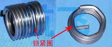 鎖緊型螺紋護(hù)套與普通型螺紋護(hù)套比較,其中部具有一圈或多圈多邊形的鎖緊圈,它們能夠在螺釘被擰入時,在螺紋的旋合面上產(chǎn)生強(qiáng)大的彈力,從而保證被可靠的鎖緊,有效地避免了緊固件因振動而產(chǎn)生的松動現(xiàn)象。鎖緊圈之上的部分可用手將螺釘旋入,旋到鎖緊圈后就必需用機(jī)械方法才能將螺釘裝入。